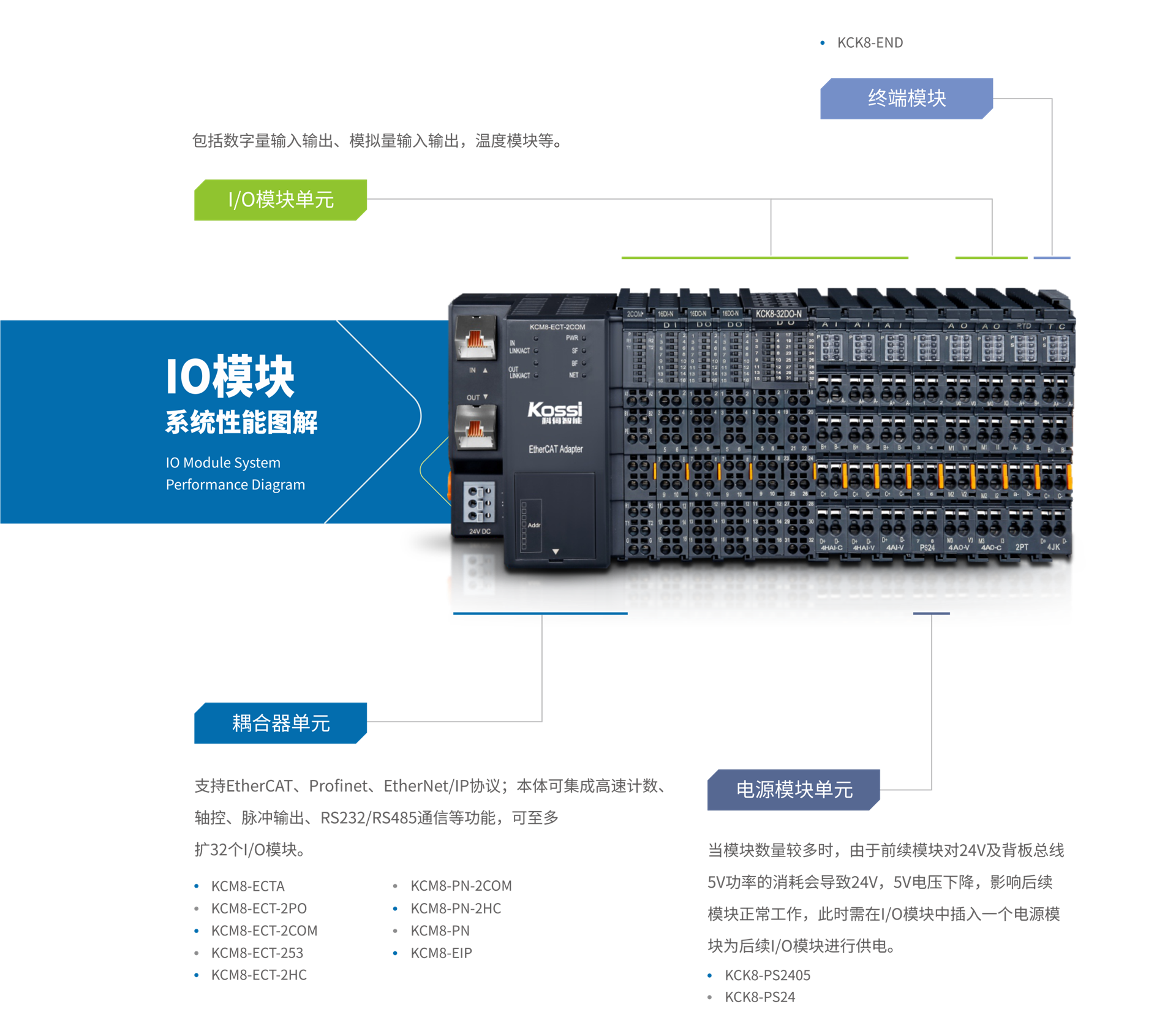 | KCM8-ECT-18 | 耦合器模塊;KCM8系列;EtherCAT總線;2個(gè)RJ45網(wǎng)口;可擴(kuò)展32個(gè)模塊;24VDC供電;帶8位撥碼設(shè)置站ID地址 |